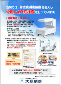 当院では、昨年8月より富士フイルムヘルスケア製 骨密度測定装置「ALPHYS-LF(アルフィス・エルエフ)」を導入しています。 ✔ 腰椎・大腿骨の骨密度を測定可能 ✔ 骨粗しょう症の早期発見に役立ちます ✔ 短時間で、身体への負担が少ない検査です 骨の健康や健診結果が気になる方は、お気軽にご相談ください。 診察時のほか、風邪などで来院された際にも対応可能です。 院内ロビーにもポスターを掲示しています。 「自分の骨、大丈夫かな?」と感じたら、お近くの医師やスタッフまでお声かけください。 【PDF】骨密度測定のご案内